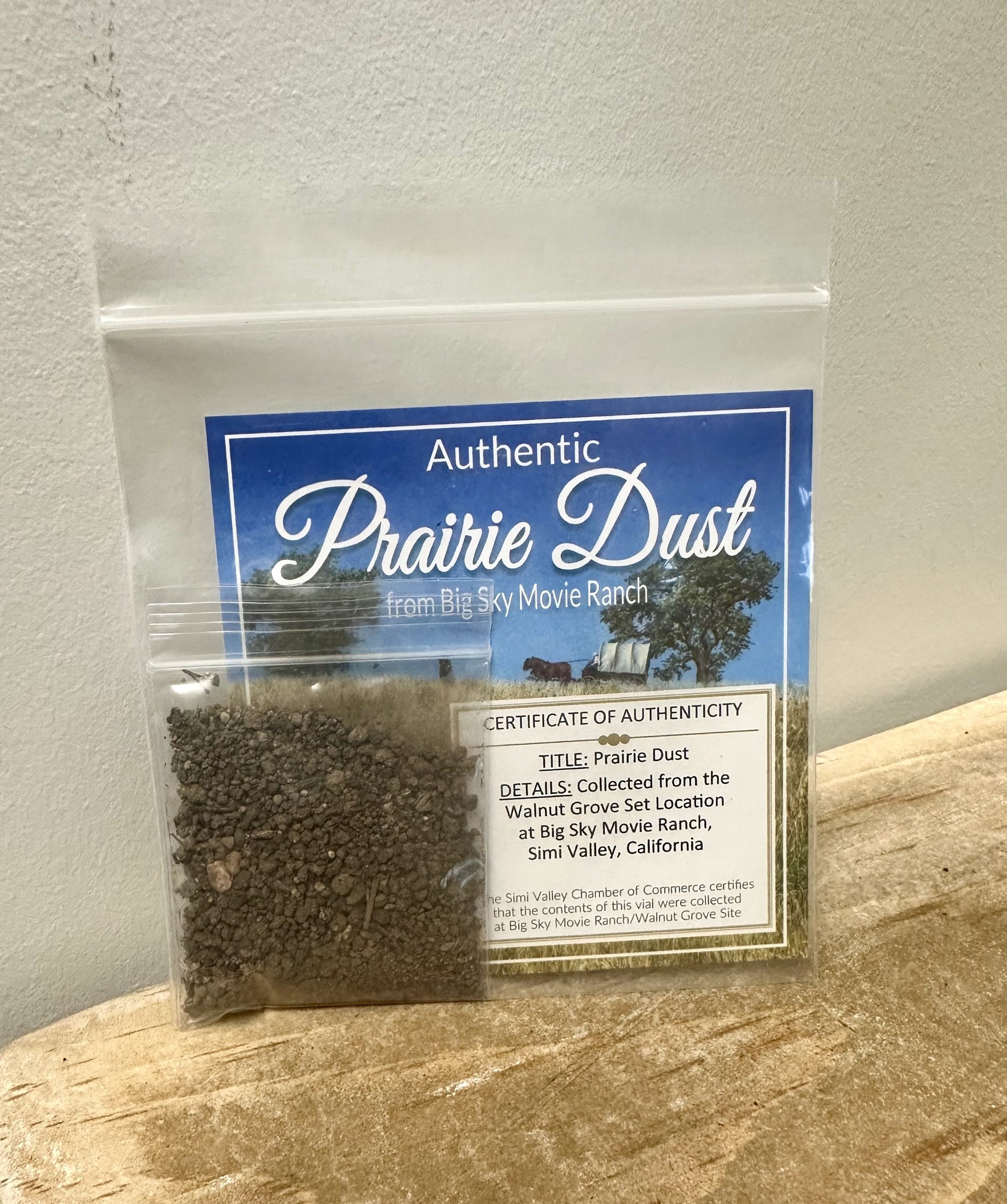 50th Anniversary Prairie Dust. This Authentic "Prairie Dust" was collected by Dean Butler (Almanzo Wilder) in downtown Walnut Grove at the Simi Valley Big Sky Movie Ranch film site of Little House on the Prairie.